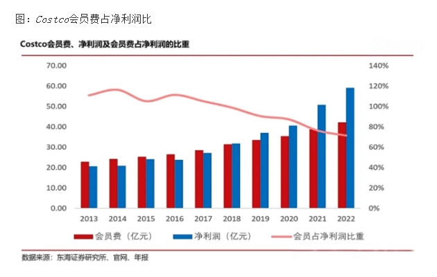 Costco的运营效率极高,例如,其存货周转天数为31天,远低于沃尔玛的45和亚马逊的47。甚至为了把控品质以及提升议价能力,还自创了品牌Kirkland包括诸多品类,自建产业链去除中间商(例如,自建养鸡场提供肉类商品),其品牌年度销售额一度达到了近600亿美元,占Costco总营收的1/4,逻辑是用25%的自营品倒逼75%的供应商提升品质、降低价格。最终,Costco的运营费用占收入比达到了惊人的6.5%左右,竞争对手沃尔玛为19%,国内京东为12%左右。同时,Costco提供无理由不限期退货服务。因此,低价格、好品质、随时退货、严选精品。没有任何价格担忧和选择焦虑,也没有品质和退换问题,用户闭着眼买即可。笔者亲身体验,退换货非常顺畅几乎没有任何问询。
