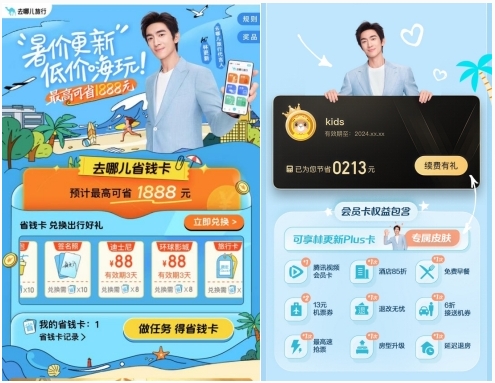 林更新本人也非常喜欢旅游,经常休息的时候就会出去玩,到景德镇“玩泥巴”,到成都体验“巴适一条龙”,荒野烧烤露营……这样爱玩爱探索的“天选旅游人”与去哪儿旅行正好契合。官宣代言后,林更新也为平台用户带来了省钱福利,用户完成任务得省钱卡,省钱卡可以直接兑换产品,最高可省1888元。以及购21.3元【新意卡】,一单回本最高可省600元,还能得【林更新】专属定制皮肤;