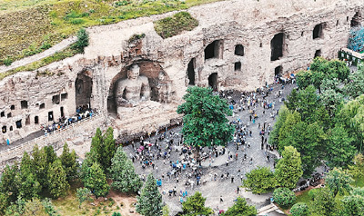 在大同市云冈石窟景区内,游客熙熙攘攘、摩肩接踵,有人与大佛隔空“击掌”合照,有人细致观察静态的石窟,聆听千年前的刀刻斧凿之声;在朔州市崇福寺,随着观音殿内的击钵声响起,游客的目光看向弥陀殿殿顶的两尊琉璃武士,不少网络主播通过镜头向网友讲解崇福寺的历史文化知识……越来越多的游客被山西古建的文化故事深深吸引,慕名前来游玩体验。