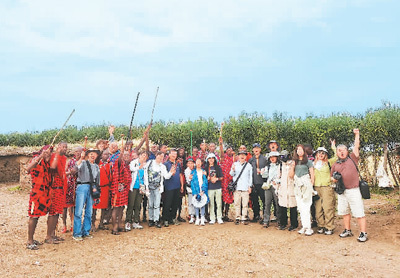 中国游客参观肯尼亚马赛马拉的马赛村部落。众信旅游供图