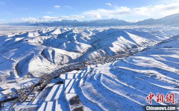 2023年12月21日,祁连山国家公园民乐段群山被白雪覆盖,峰峦间云雾缭绕。(资料图)王晓泾 摄