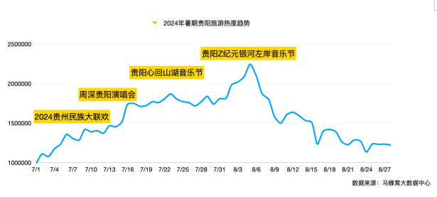 今年暑期贵阳文旅互联网“种草力”同样“涨势喜人”。“西天取经式”漂流、黔灵山公园网红“吗喽”、贵阳音乐节等热点吸引了大量游客慕名打卡,带动贵阳冲进2024暑期热度环比飙升城市前二。