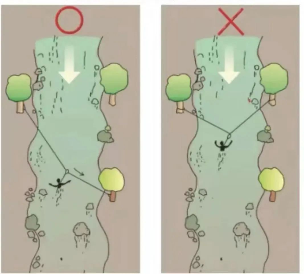 左图为斜向横渡,右图为直线横渡 图源:中国探险家协会微信公众号