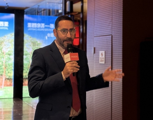 随后,瓦伦西亚市旅游局代理总监Miguel Angel Pérez先生向在场的嘉宾详细介绍了瓦伦西亚市的悠久历史、丰富的文化底蕴以及该市在可持续旅游方面的领先地位。瓦伦西亚,作为欧洲绿色之都,拥有宜人的地中海气候、迷人的自然风光以及闻名世界的美食文化,已成为全球游客喜爱的海滨度假胜地。Miguel先生还分享了瓦伦西亚DANA风暴后的恢复情况,表达了希望旅游业的快速恢复和游客的到来能够为灾后的瓦伦西亚注入新的活力与发展动力。他补充说,“如今,来到瓦伦西亚旅行是帮助瓦伦西亚尽快恢复的最有效方式”。作为旅游业恢复良好的例子,他分享到,“瓦伦西亚将于下周日举办著名的马拉松比赛,届时将有3万余名选手参赛,其中50%以上为国际选手,包括一些来自中国的选手”。