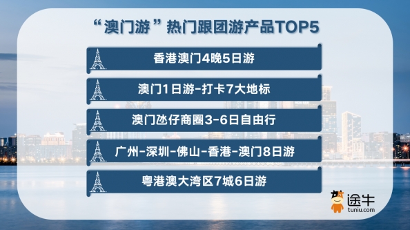 此外,随着元旦假期的临近,港澳游热度也迎来大幅提升。途牛截至目前预订数据显示,元旦当周(2024年12月30日-2025年1月5日)期间,途牛港澳游用户出游人次环比前一周(2024年12月23日-29日)实现了两倍以上的增长。港澳游相关的团队定制游、跟团游及自由行产品预订尤为火爆。特别是港澳连线的5-6日跟团游产品,以及“广深珠-香港-澳门6日游”“广深珠-香港-澳门-港珠澳大桥7日游”和“香港-澳门-珠海纯玩3日游”等粤港澳连线跟团游产品,成为了途牛用户的热门之选。