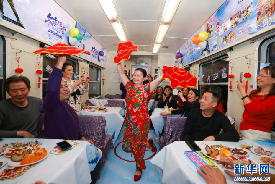 11月28日晚,252名60岁以上的老年旅客乘坐Y685次“福鹿雪国号”号旅游列车从哈尔滨东站出发,开启