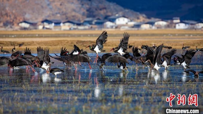 纳帕海的黑鹳群。彭建生 摄