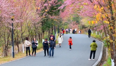 江西崇义:樱花绽放 姹紫嫣红迎春到