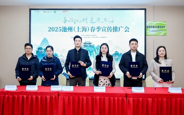 2025年3月22日,由池州市文化和旅游局联合上海《旅游时报》共同策划的“春游池州•走进上海”春季营销推广活动在上海成功举办。活动以“长三角文旅惠民市集+社区深度互动+线上线下联动+千人游池州”为核心,通过“春游”+“康养”内容精准对接上海市民需求,进一步巩固长三角文旅市场,展现池州“山水池州•灵秀九华”的独特魅力。