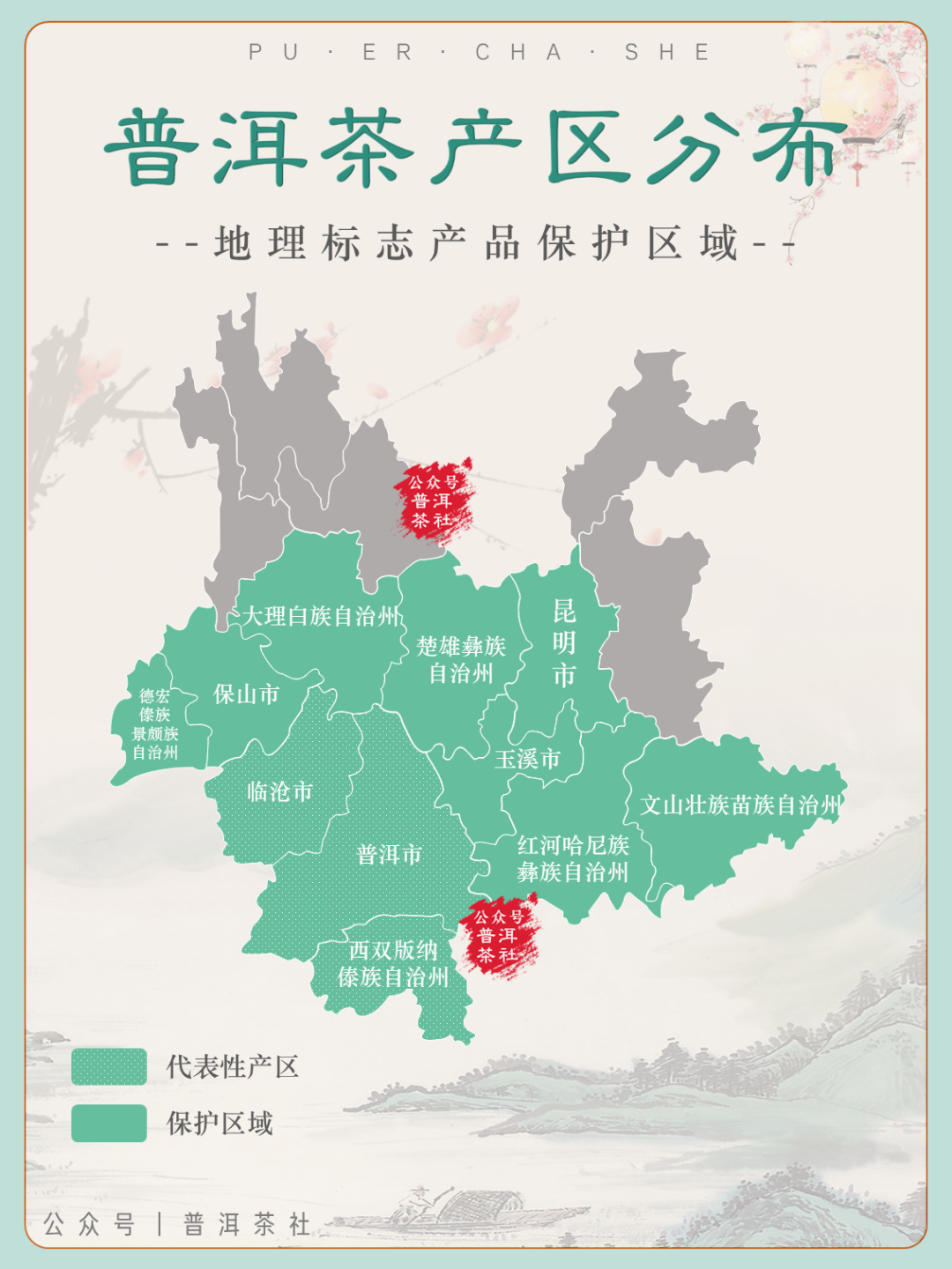 云南普洱茶产区分布 图源:“普洱茶社”微信公众号