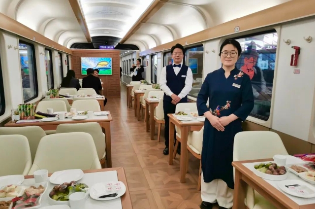 该列车由15节车厢组成,除硬座、硬卧、软卧、发电车外,还设有娱乐功能车和餐饮车,方便游客休闲放松,品尝山东美食,购买特色文创。
