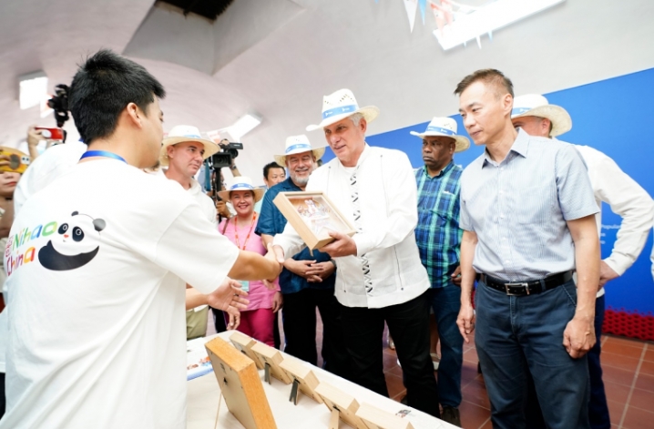 当地时间5月2日上午,古巴国家主席迪亚斯-卡内尔专程来到“你好!中国”主宾国展区,与展区内的中国参展工作人员亲切交谈,并对展区开展的形式多样的中国文化和旅游展示活动赞赏不已。迪亚斯-卡内尔高度评价中国作为主宾国的重要贡献,称赞中国馆“美轮美奂,生动展现了中国悠久的历史和灿烂的文化”,他说,古巴钦佩中国的文化与发展成就,期待更多中国游客来访。