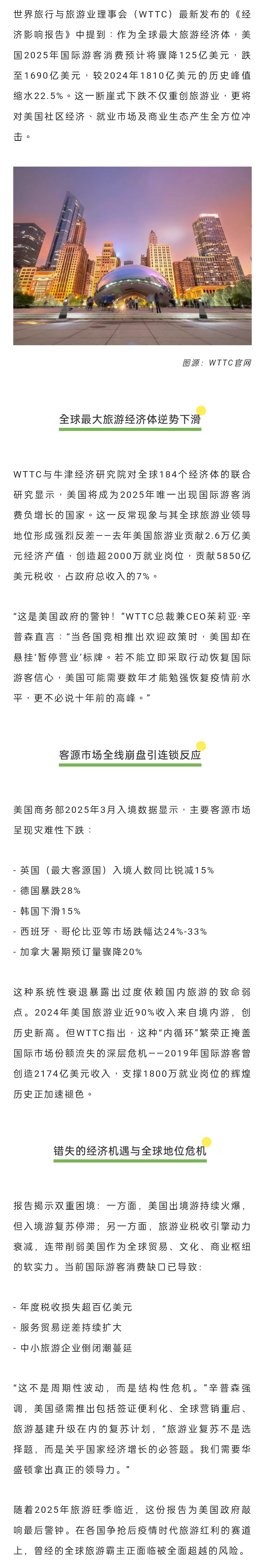 WTTC:美国国际旅游收入恐缩水125亿美元