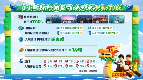 今年端午假期,出入境游呈现出双向火热的态势。一方面,国内游客热情奔赴境外目的地,享受短途海岛度假的惬意;另一方面,外国游客也纷至沓来,感受中国传统节日的魅力。中国的“旅张力”在端午节依旧强势发力,入境游订单涨幅近九成,入境游门票GMV同比去年暴涨1.5倍;三天的假期时长也没挡住国人出国旅游的热情,三小时飞行圈内的日本、韩国、中国香港、泰国、马来西亚等地都有国人的身影。