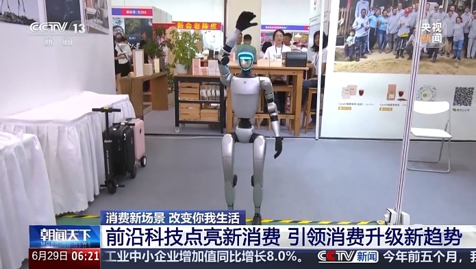 强脑科技研发测试兼产品体验官 姜颂宁:当我们大脑去想某一个动作的时候,它就会产生神经电和肌电信号。在我这个接触舱里面有一圈传感器来采集神经电和肌电信号,再通过AI算法倒推运动意图,来实现智能仿生手的运动。科技正在带来越来越多的新消费场景,给大家带来新生活。在江苏南京,全球首款智送一体咖啡机器人在南京商业化落地。不仅如此,多旋翼无人机、通用人形机器人等新兴产业领域首发成果相继公布,当地正通过“产业+创新”,引领消费升级新趋势。