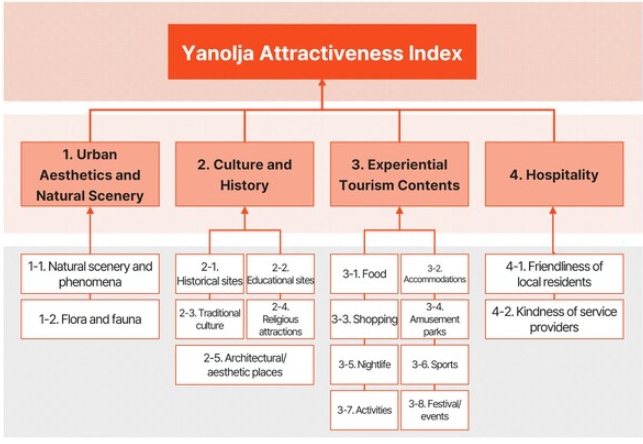 基于这两大核心支柱,Yanolja Research从四个关键维度对旅游城市的吸引力展开全面评估: