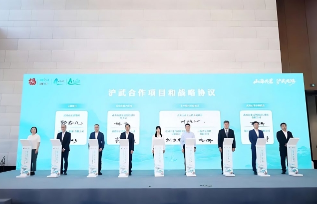 活动现场,多个招商项目信息发布,包括:武夷山市五夫镇云集・卜空改造、星村镇茶旅研学及精制茶生产,内容涵盖生态康养、文旅融合开发、茶产业链延伸等领域。同时,多场签约仪式举行,像是武夷山希尔顿酒店、茶饮原料生产线、武夷山百草箱华夏国医康养园等8个招商项目(总金额达13.2亿元),以及5个战略合作项目等。预计沪武两地将在投资促进、宣传推广、客源互送等方面进一步深度合作。
