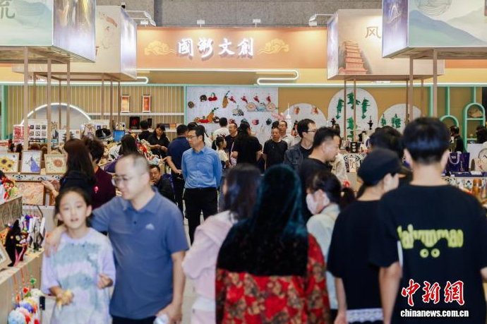 9月21日至22日,甘肃敦煌,第八届敦煌文博会上,各类文创产品吸引观众参观。闫姣 摄