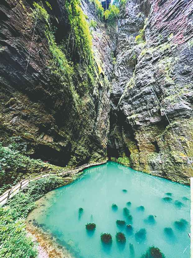 Hou'er Sinkhole and Hejia Cave in Guizhou province boast unique karst landscapes and are home to a variety of plants. [Photo by Chen Liang/China Daily]