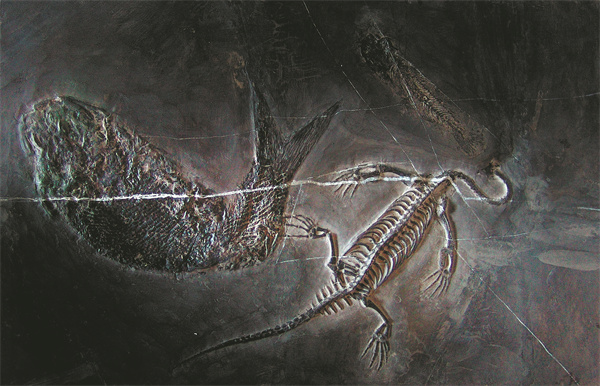 Guizhou Dragon and Sichuanosuchus shuhanensis fossils.[Photo provided to CHina Daily]