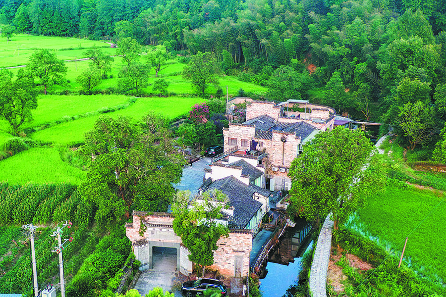 A bird's-eye view of Schober's homestay and surrounding areas in Tachuan village, Huangshan, Anhui. [Photo/Xinhua]