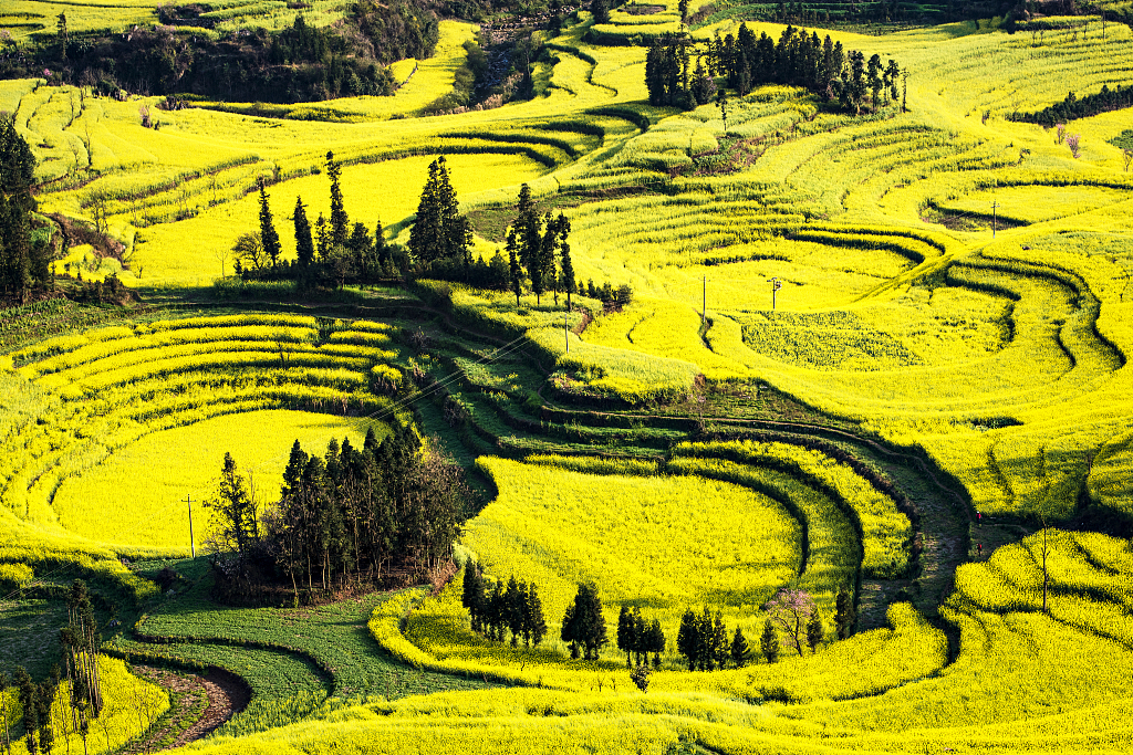 As early as February, when the winter cold is still gripping most of China, rapeseed flowers in Luoping begin to signal the arrival of spring. The county has earned the nickname "Hometown of gold and jade" because of the sprawling swathes of yellow across hills, valleys and terraces.