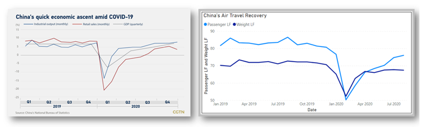 Official data from China’s National Bureau of Statistics show that key indicators like GDP, retail sales and industrial output all declined sharply in the first quarter of 2020, but before the start of Q2, all three figures have started to rebound quickly. The Chinese economy has mostly returned to and stayed at normal levels since the second quarter.