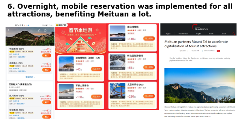 6. Overnight, digital reservation was implemented for all attractions, benefiting Meituan a lot.