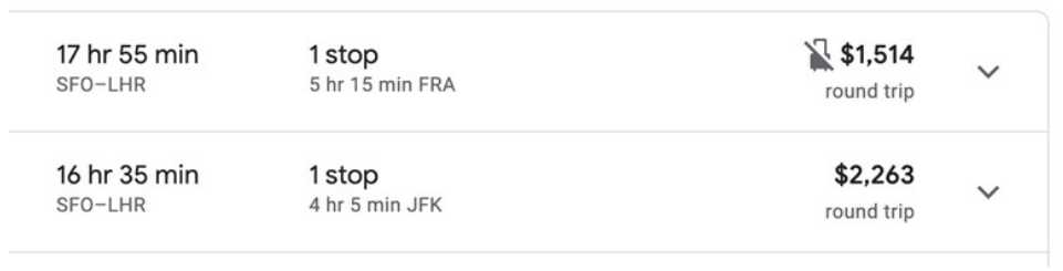 Imagine that your airline is the second result in the search below for a flight between San Francisco and London. Which result will entice a traveler to click first? Even if the top result doesn’t allow checked bags, many will click the lowest fare first. If your lowest compliant price isn’t in the mix, then the traveler may go elsewhere - even if your airline can match that lowest fare.