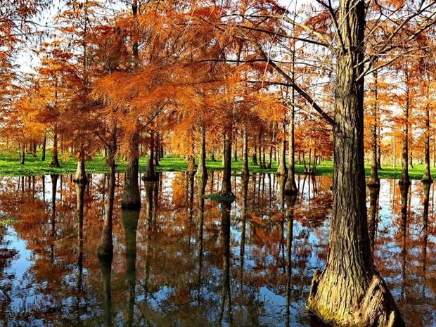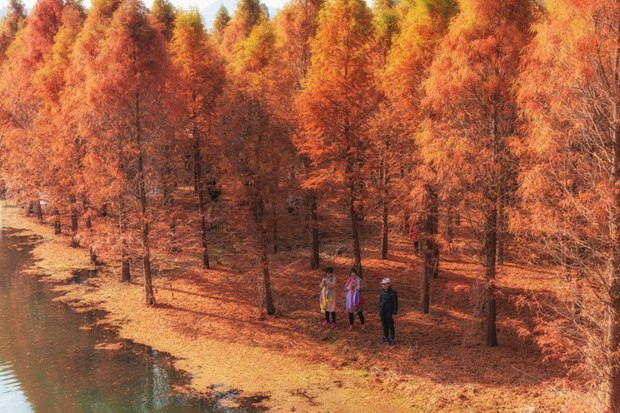 Dubbed a "living fossil", the dawn redwood forest in the Qingxi Suburban Park in Shanghai covers an area of 5.53 hectares (83 acres). Decorated with birds and flashes of light from the lake, this overwater dawn redwood forest in Shanghai looks magnificent. In late autumn and early winter, the green leaves of the dawn redwood gradually turn bronze and red, which look glamorous in the sunlight and seem to demand that tourists take their picture.