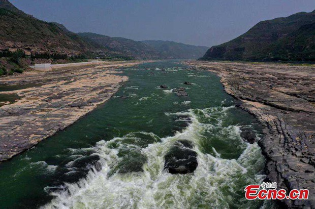 Recently, the water of Hukou Waterfall on the Yellow River in Jixian County, Linfen City, Shanxi Province has turned into crystal green. Affected by the drought and low rainfall in the upper reaches, the main stream of the Yellow River in the Shanxi-Shaanxi Gorge reduced the water flow, the water flow slowed down, the color of the Hukou Waterfall became clearer, and the green waves rushed.