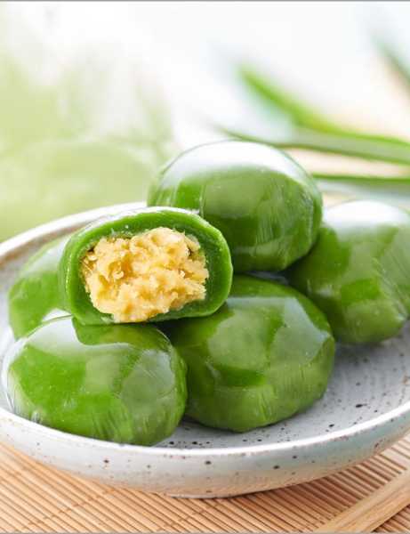 For example, in 2016, Shanghai dessert maker Xing Hua Lou debuted a kind of qingtuan which was filled with egg yolk and dried pork floss. This variation is still popular with customers.