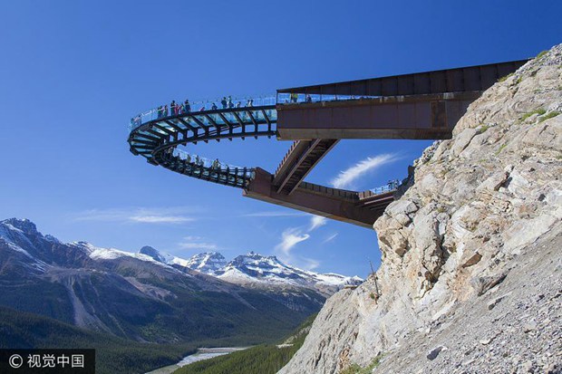 The Glacier Skywalk, a glass-floored observation platform at the Jasper National Park, Canada, enables tourist to overlook the Sunwapta Valley. The rock climbing environment is free to the public and offers climbers many routes.[Photo/VCG]