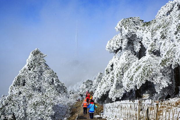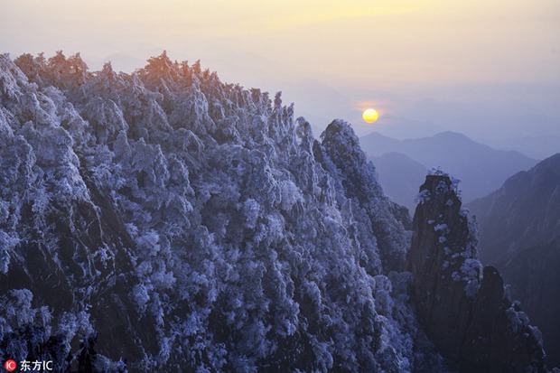 Landscape of rime-covered trees at the Huangshan Mountain scenic spot in Huangshan city, East China's Anhui province,[Photo/IC]