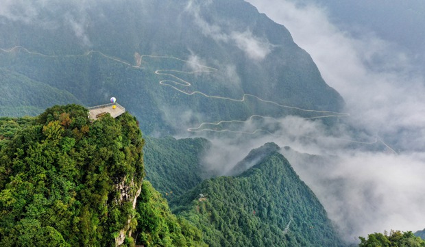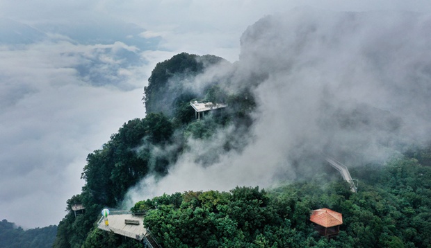 A picture taken by a drone shows the scenery of the mist-shrouded Longtoushan scenic spot in Nanzheng district, Hanzhong city, Shaanxi province. Located at the junction of Sichuan and Shaanxi province, Longtoushan scenic spot is enveloped in misty clouds all year round, with looming mountains and forests looking much like a Chinese landscape painting.[Photo/Xinhua]