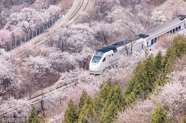 The "train for spring" travels through the Huanghuacheng Great Wall area. [Photo/VCG]