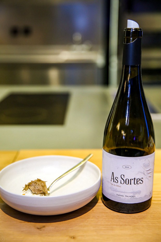For the foamed cuttlefish roe soup, Lyv chooses a La Solucio Rosa 2017 which is made with six different grapes and fermented with natural yeast.