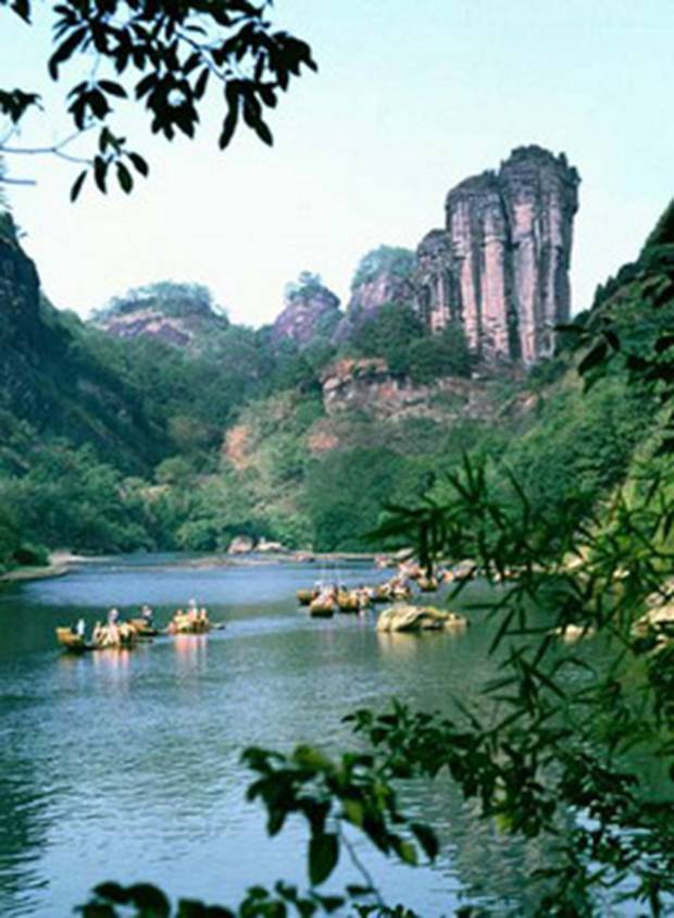 In the 70-sq-km Wuyi Mountain scenic spot, tourists can enjoy many special and unique natural features, including steep cliffs, fantastic mountains, winding rivers, quiet valleys, dangerous gullies, deep caves and strange stones. It has many well-known scenic spots, including Jiuqu Stream, Liuxiang Ravine, Yunv Peak, Dawang Peak, Sanyang Peak, Tianxin Rock, Huxiao Rock, Yingzui Rock, Water Curtain Cave, Peach Blossom Land, Yunwo, Huiyuan, Tianyou Temple, Wannian Palace, Thin Strip Sky, Jiulong Village, Wolong Spring, Furong Beach and Wuyi Villa.