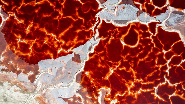 The bright red lake water has flowed like blood on the surface for hundreds of years, and the shape of the lake surface is like a beating heart imprinted on the earth.