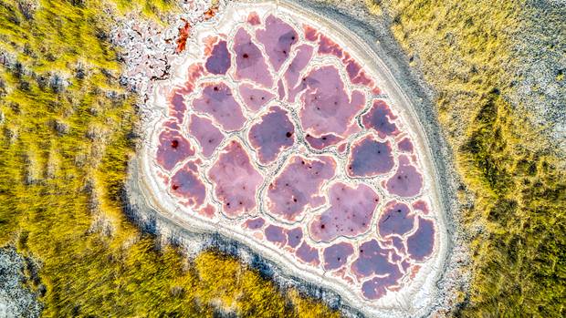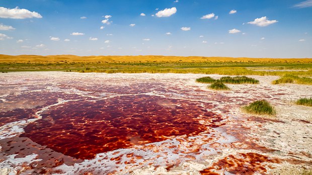 It turns pink and red because of the enormous upsurge in red algae found in the salt lake that dried up in 1995. /CFP