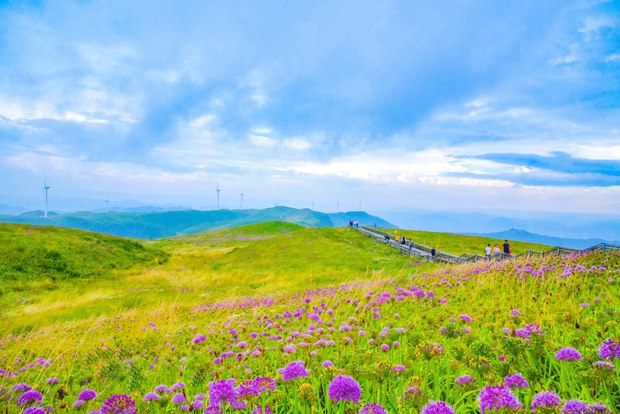 Now is the best time to admire the blooming wild leek flowers at Jiucaiping scenic spot in Hezhang county, Bijie, Southwest China's Guizhou province. The scenic spot is located on the highest peak in the province and offers some truly breathtaking views.