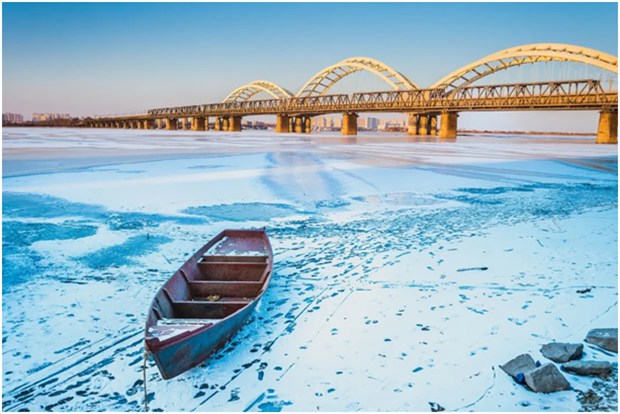 In winter, the Songhua River turns into "thousands of miles of ice" and becomes a natural ice-skating rink.