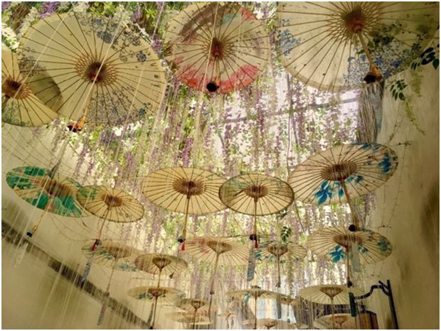 A lane in Sanfang Qixiang district displays paper umbrellas, a local handicraft considered a Fuzhou specialty.[Photo by Elyar Najmehchi for chinadaily.com.cn]