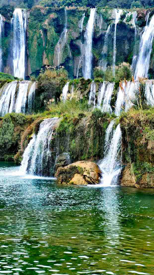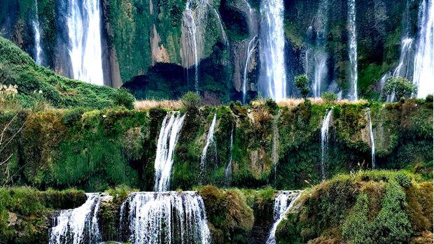 The Jiulong Waterfall sits on the north part of the county, and it has been listed as one of the top six most beautiful waterfalls in China by Chinese National Geography for its special geological structure. Guided by the Chinese lunisolar calendar, the local Buyi ethnic people gather near the waterfall on February 2 and March 3 every year, to celebrate the Song Festival and Water Splashing Festival.