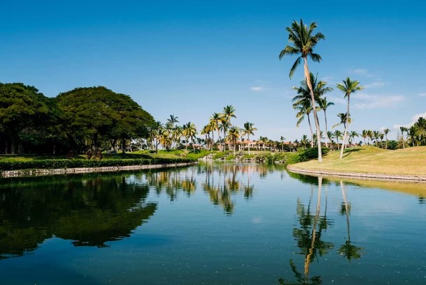 The Big Island is home to more than a dozen golf courses, including private, semi-private, and public options. At the Four Seasons Resort Hualālai, there's a Jack Nicklaus-designed course, a practice facility, and a Top Golf Swing Suite, and homes, villas, and home sites are available. The Mauna Kea Beach Hotel's golf course is stunning, and golfers can also find excellent courses nearby at the Westin Hapuna Beach Resort, Mauna Lani, Hilton Waikoloa Village, and the Kona Country Club.