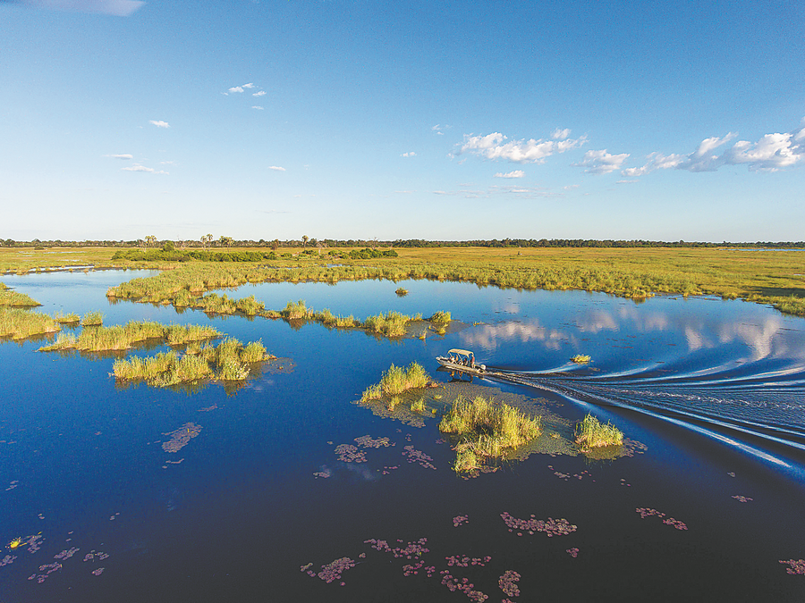 Wilderness Safari DumaTau is a camp located in the private Linyanti Wildlife Reserve on the western boundary of Chobe National Park, Botswana. Guests are encouraged to report wild dog sightings, so as to help the camp further protect the animals.
