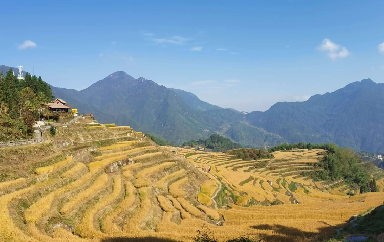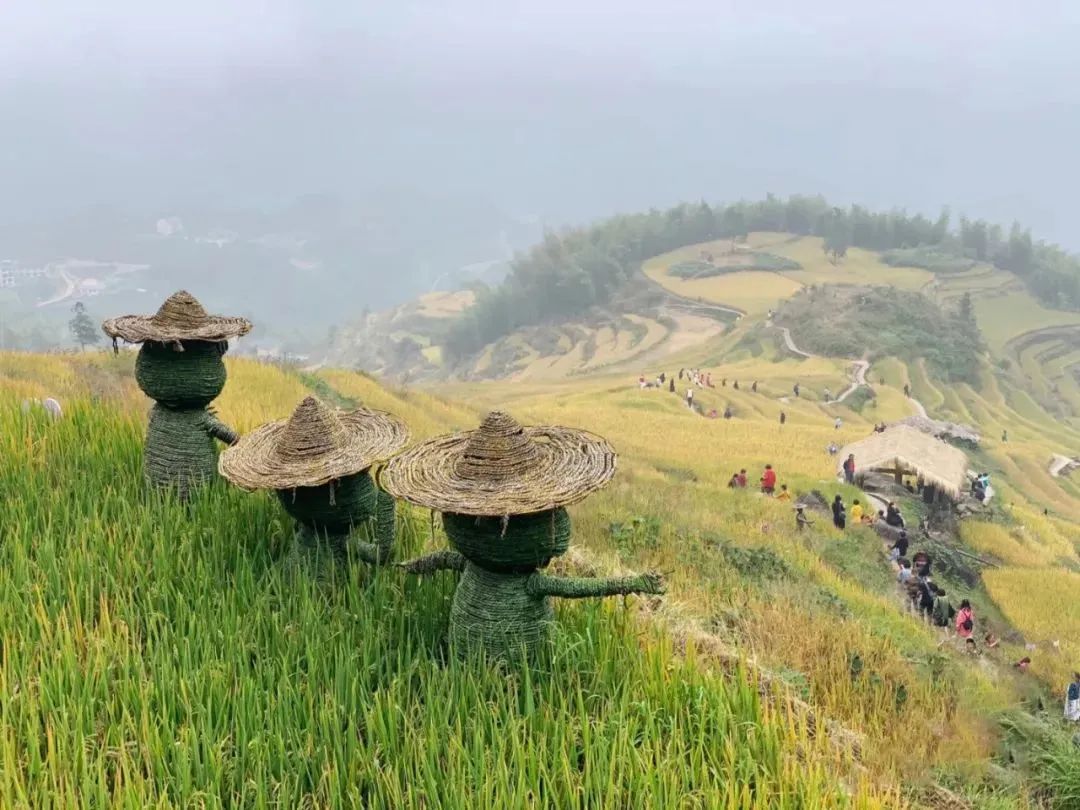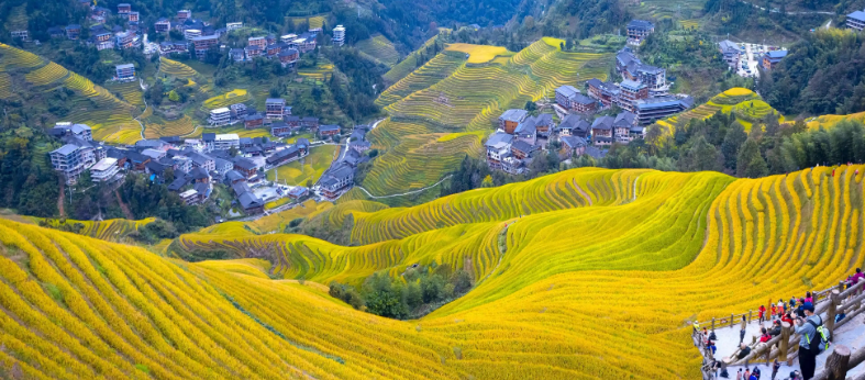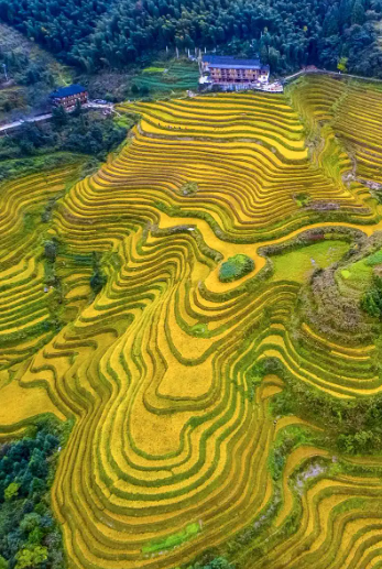 Dragon ridge terraces are called "the most beautiful curves on the earth". In autumn, the terrace color progresses from green to yellow, all the way to the scenery.