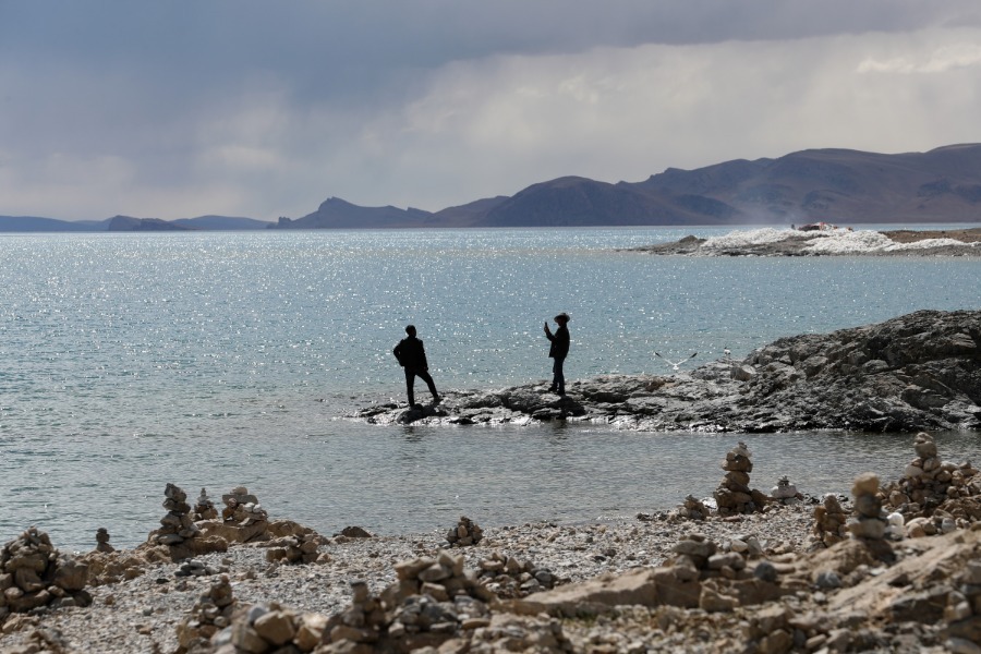 Tourists enjoy the scenery of Lake Namtso in Southwest China's Tibet autonomous region. Located in the heart of the Qinghai-Tibet Plateau, Lake Namtso is 4,730 meters above sea level.