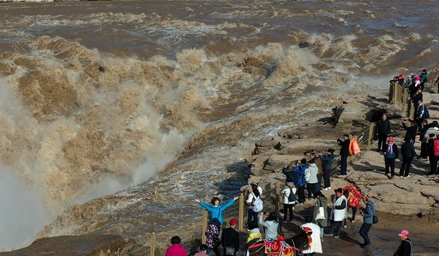 Hukou Waterfall is located in the middle reaches of the Yellow River, which sits at the intersection of two easily confused provinces – Shanxi and Shaanxi. It is the largest yellow waterfall in the world. Its width changes with the season, however on average, it measures 30 meters in width by 20 meters in height. The roaring sound of the water as it plunges into the deep gorge is awe-inspiring, and the mist that rises from below adds to the area's mystical beauty.