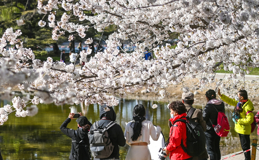 Tourists enjoy spring blossoms at Yuyuantan Park in Beijing, capital of China, March 27, 2023. [Photo/Xinhua]